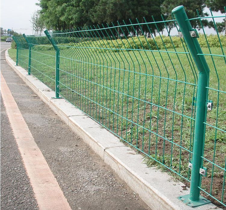 合適的折彎,造就了此種產品美觀效果,而且表面采用多種 顏色的浸塑處理,如黃色,綠色,紅色,立柱與網片不同顏色的搭配更是令人賞心悅目,同時此種產品多采用帶底盤立柱,安裝只需打好膨脹螺栓,非常的快捷。